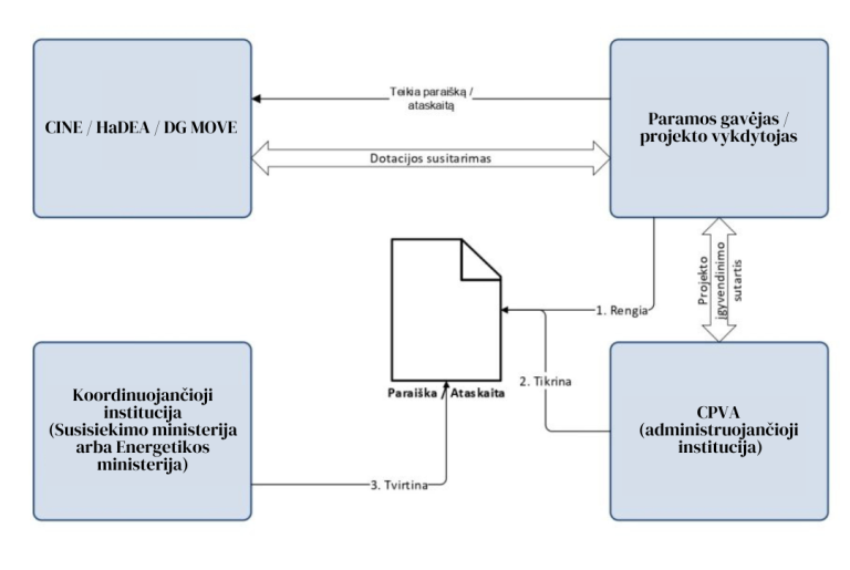 Lietuvos Respublikos Vyriausybės 2014 m. spalio 15 d. nutarimu Nr. 1102 „Dėl Europos infrastruktūros tinklų priemonės įgyvendinimo Lietuvos Respublikoje“ Centrinę projektų valdymo agentūrą paskyrė administruojančiąja institucija, atsakinga už Europos Sąjungos finansinės paramos, teikiamos vadovaujantis Europos infrastruktūros tinklų priemonei nustatytomis sąlygomis, metodais ir procedūromis, lėšomis finansuojamų transporto ir telekomunikacijų sektoriaus projektų įgyvendinimą ir lėšų panaudojimą.