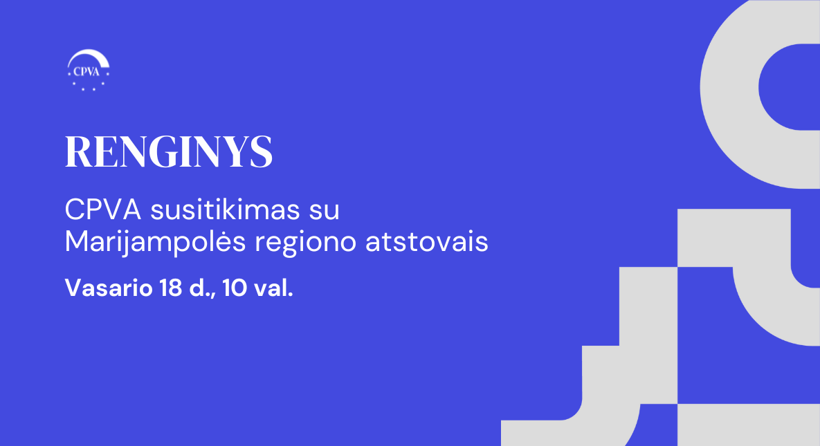 CPVA specialistai vasario 18 d. susitinka su Marijampolės regiono plėtros tarybos bei Marijampolės regiono savivaldybių atstovais (Basanavičiaus a. 8, Marijampolė).