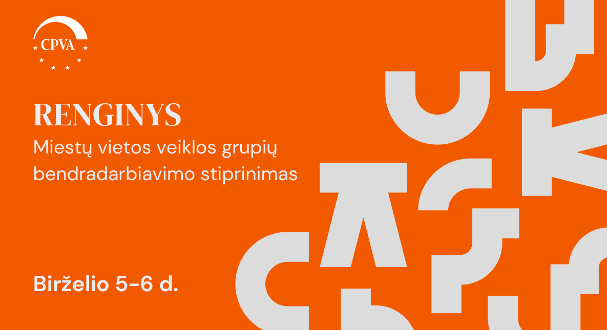 VšĮ „Centrinė projektų valdymo agentūra“ (CPVA) kartu su Vidaus reikalų ministerija maloniai kviečia į organizuojamą renginį „Miestų vietos veiklos grupių bendradarbiavimo stiprinimas“ (programa pridedama). Tai yra CPVA įgyvendinamo Europos Sąjungos finansuojamo projekto Nr. 11-005-P-0001 „Vietos veiklos grupių kompetencijų ir bendradarbiavimo stiprinimas“ dalis.