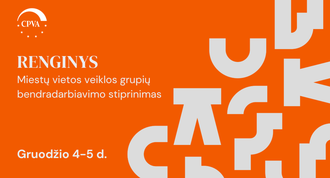 VšĮ „Centrinė projektų valdymo agentūra“ (CPVA) kviečia į organizuojamą renginį „Miestų vietos veiklos grupių (VVG) bendradarbiavimo stiprinimas“, kuriame bus kalbama apie miestų VVG ir CPVA bendradarbiavimą vykdant projektų atranką, skelbiant Kvietimus teikti projektų įgyvendinimo planus (PĮP), atliekant šių gautų PĮP vertinimą, sklandesnę komunikaciją ir sėkmingas bei efektyvias tikslų bei projektų įgyvendinimo galimybes.