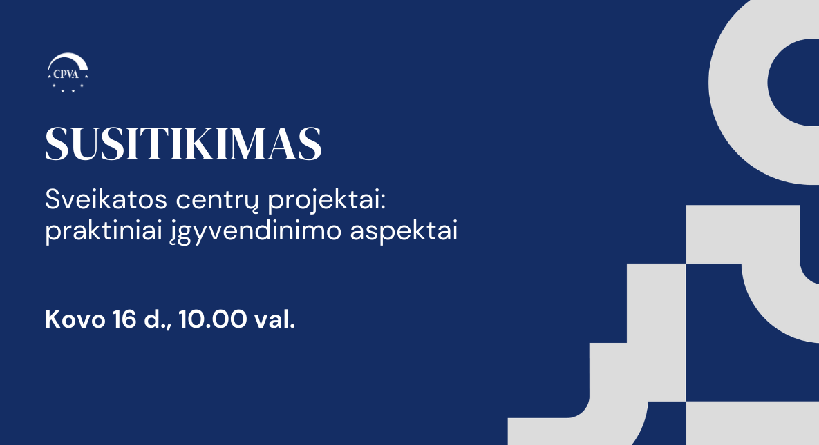 Centrinė projektų valdymo agentūra (CPVA) maloniai kviečia projektų vykdytojus į susitikimą-diskusiją „Sveikatos centrų projektai: praktiniai įgyvendinimo aspektai“ apie projektų, įgyvendinamų pagal kvietimus: